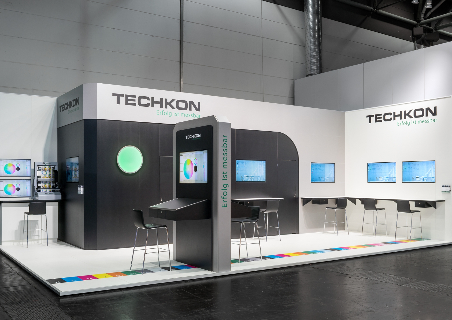 Aussteller TECHKON, gegründet 1983, entwickelt und produziert hochwertige Messgeräte wie Densitometer und Spektraldensitometer sowie spezialisierte Software-Lösungen für die Druckindustrie. Diese Produkte, die weltweit direkt und über Fachhändler vertrieben werden, stehen für Präzision und Benutzerfreundlichkeit. | Messe DRUPA: Leitmesse der Print- und Verpackungsindustrie, Düsseldorf. | Standgröße 57 m², Eckstand | Fotos Martin Gaissert | Messedesign, Projektmanagement, Produktion und Messemontage HALLMANN Messebau & Design, Düsseldorf → mehr über uns erfahren